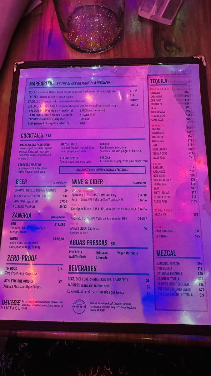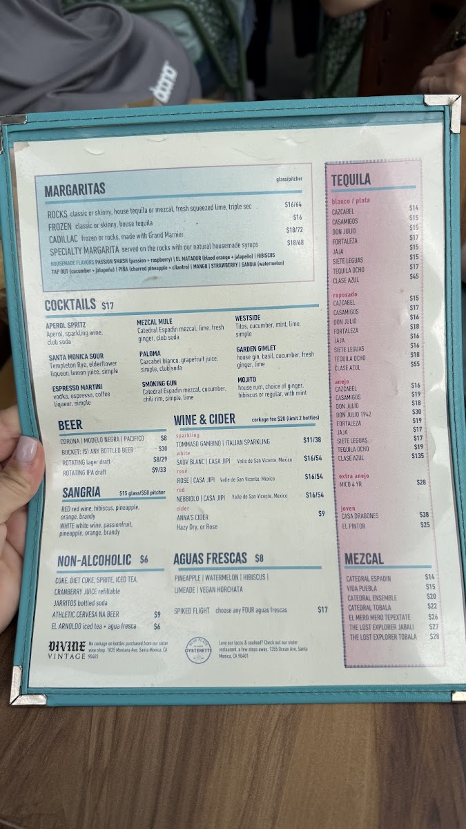“ We were visiting from out of town and my friend recommended this place. It is right on Ocean Ave so great for people watching! We were able to use the parking lot close by and then we walked across the street to look at the ocean and take pictures before heading out so it was perfect! Now about the food! We came for the tacos and they had a 3 taco plate. The menu said all 3 tacos must be the same, but our server let us order 3 different tacos. I ordered carnitas, fish and birria. My favorite by far was the birria. So so good! And the sauce was divine! My least favorite was actually the fish! I thought it was a bit dry! But I will say they did not skimp on the meat at all. I could barely finish my tacos. Also the rice is brown rice so they really try to use super fresh and healthy ingredients which I like. All of the servers are very attractive! It was a very pretty view all around, lol! Fun place, awesome food, great location to hang for a bit! I definitely recommend it! ”